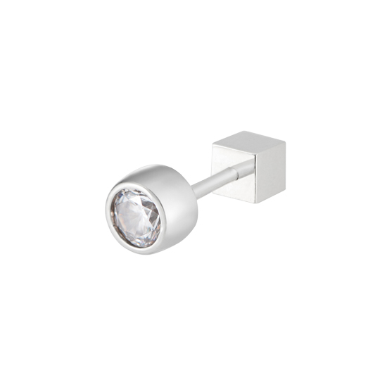 반짝이는 C.Z스톤이 모던하게 세팅되어 있는 심플하고 미니멀한 디자인으로 박스 형태의 피어리스가 포인트인 피어싱입니다.