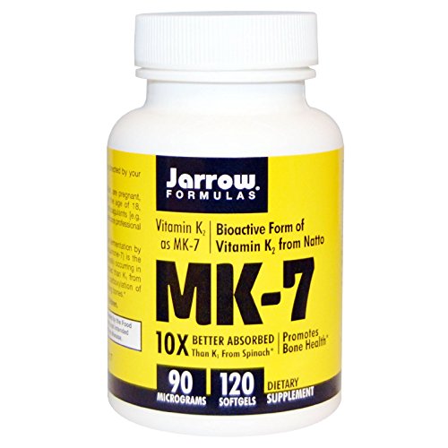 Jarrow Formulas MK-7 is made via fermentation by Bacillus subtilus natto. MK-7 (Menaquinone-7) is the bioactive form of vitamin K2 found naturally occurring in Natto. MK-7 is ten times better absorbed than K1 from spinach and is responsible for the carboxylation of specific bone proteins needed for building bones.Feature