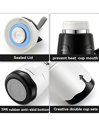- [USER-FRIENDLY DESIGN] This vacuum cup child made of Leak proof Food grade silicone sealing lid ;Food grade PP silicone protect your mouth when drinking hot water;Non slip bottom and Portable sling design.
