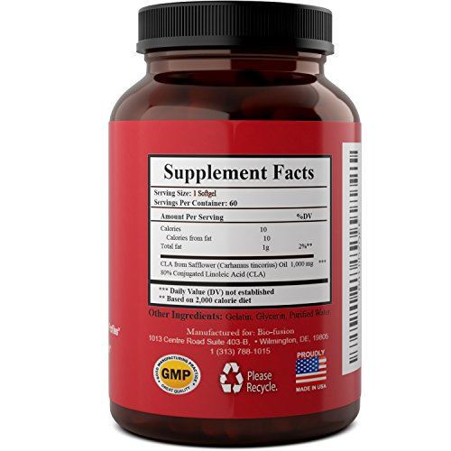 -. Binding : Health and Beauty -. Brand : Biofusion -. EAN : 0793574995901 -. Feature : LOSE WEIGHT WITH CLA - power of pure safflower oil lowers body fat percentage burning fat with natural extracted conjugated linoleic acid - men and women increase their lean muscle mass + tissue / MELT FAT ORGANICALLY - CIS fatty acids oleic + linoleic + palmitic + stearic acid - lower body fat melting point + metabolize adipose stores - helps body use food for fuel faster + melt fatty deposits / REV METABOLISM & MORE - suppress appetite - boost energy - increase lean muscle mass - lower blood pressure - stabilize insulin + blood pressure - support breathing and lung health - lower bmi / DR RECOMMENDED & HEART HEALTHY - Drs call CLA a "miracle in a bottle" + "magic" thanks to healthy antioxidant oils and good fatty acids - 28 isomers - powerful belly blaster + diet aid / EXERCISE TO REAP BENEFITS - CLA works alone but add cardio and weight lifting for more calorie burn + ab blast + and high metabolism all day + improve bodybuilding results + body mass index -. IsAdultProduct : 0 -. Label : Biofusion -. Manufacturer : Biofusion -. MPN : LE -. PackageQuantity : 1 -. PartNumber : LE -. ProductGroup : Health and Beauty -. ProductTypeName : HEALTH_PERSONAL_CARE -. Publisher : Biofusion -. Studio : Biofusion -. Title : Pure Safflower Oil CLA Complex - Conjugated Linoleic Acid Supplement - Organic Weight Loss - Men + Women - Best Fat Burner Pills - Boost Metabolism + Energy + Suppress Appetite + Lose - Biofusion -. UPC : 793574995901