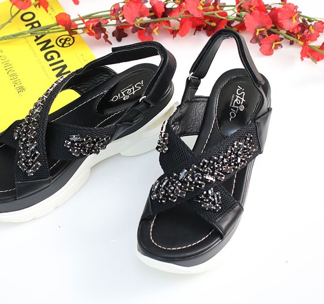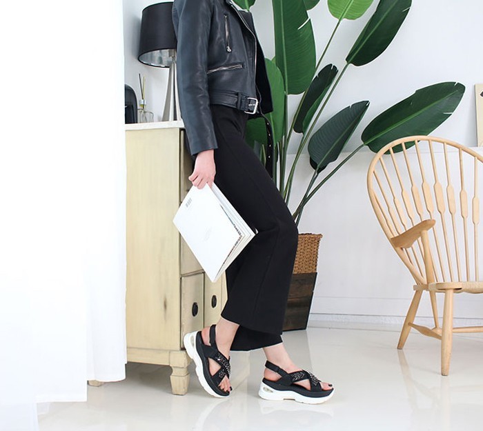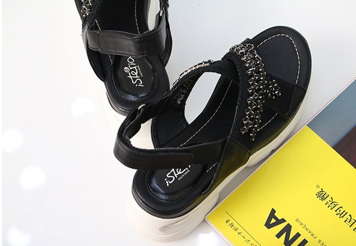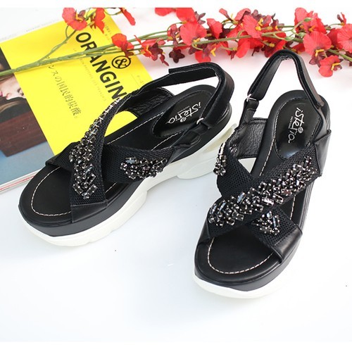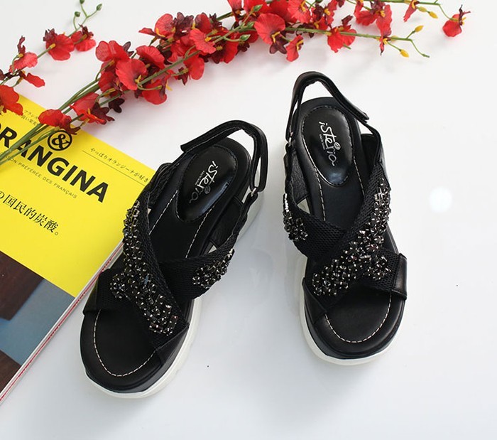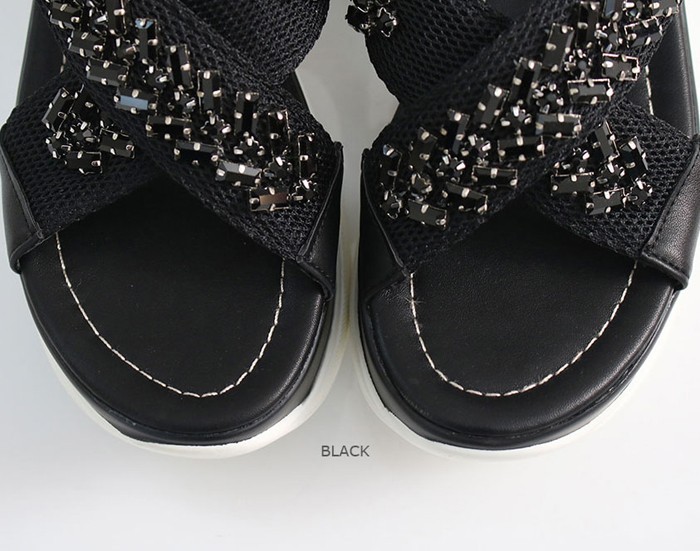 商品名:サンダル レディース クロスストラップ 厚底 ビジュー 2018 春 ファッション 靴 婦人靴