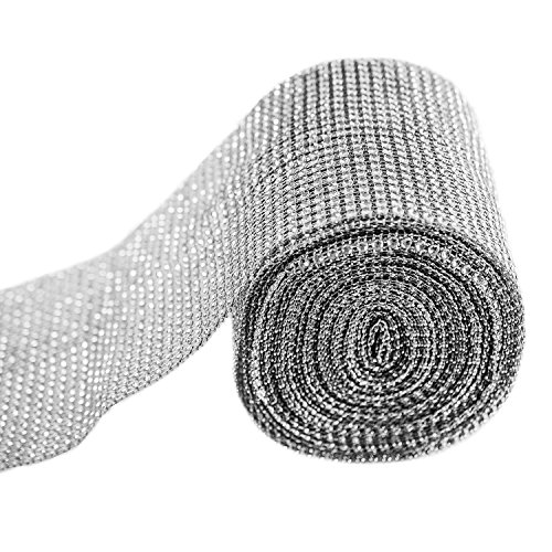 - Feature : ELEGANT DECORATIVE RIBBON - Sparkling silver rhinestone mesh, perfect accessory to place anywhere you can think of. / CUSTOMIZE HOW YOU WANT - Held together by string mesh, this roll of rhinestone ribbon is easy to cut to the length of your choosing. / DECORATE WHAT YOU WANT - Many event designers use the ribbon/wrap to decorate cakes, candles, vases, centerpieces to add some "sparkle" to the event. / LONG AND WIDE - 24 Row of rhinestones on silver mesh backing. 10 yards of 4.75"inch row of stones. / EXCELLENT VALUE - Gives a diamond "look", but please keep in mind these are not actual rhinestones or diamonds.