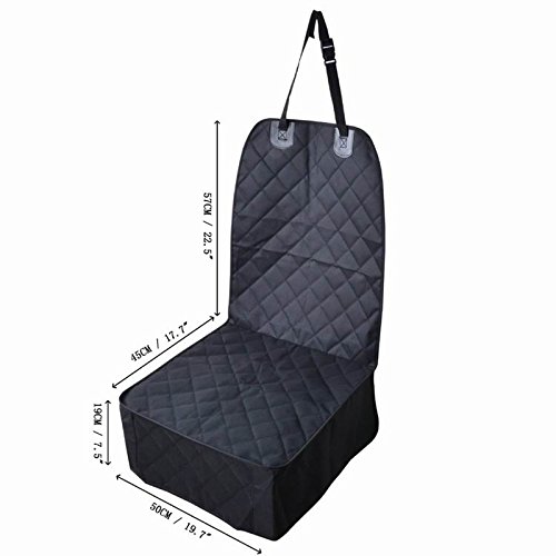 -. Feature : INSTALL & CLEAN -The front pet seat covers is Very easy to install and remove. Machine washable: Use Gentle Cycle. Easy to clean it with a damp cloth or just vacuum. / WATERPROOF - The front dog seat covers made with high quality heavy-duty polyester for durability. Protects seat from pet hair, mud and water, no worry about dirt, dander or claw marks on your seats. / NO SLIP & SLIDING-With the black pet seat cover has a rubberized backing that allows it to stay in place so you needn't worry about your puppy to be fall out of the seat and get dirt, dander or claw marks on your seats when you're driving / UNIVERSAL FIT - 22x40 inch dog seat cover suitable use pet seat covers car. Available for most cars, trucks, automotives and SUVs. Not only for small medium dogs, Perfect for large breeds. And Please measure your seat's dimension before you order. / WARRANTY - All products purchased from us are guaranteed to keep in good repair for 180 days.If quality problems happen in guaranteed period, we will maintain for free