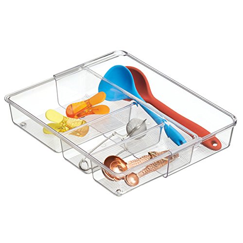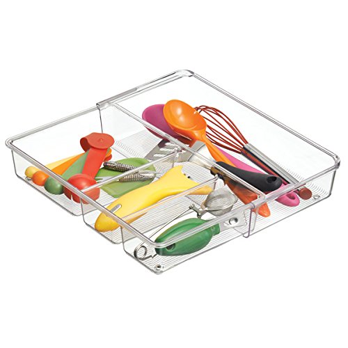 mDesign Expandable Kitchen Drawer Organizer for Silverware, Spatulas, Gadgets - 12" x 7" x 2.3", Clear
