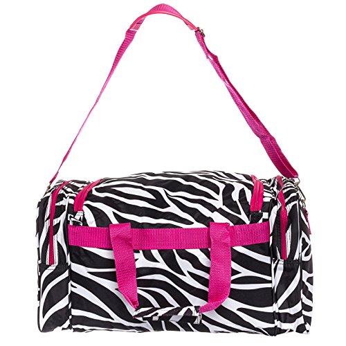 -. Title : 20" Print Carry-On Duffel Bag w/ Pink Trim (Black & White Zebra)