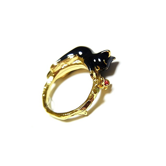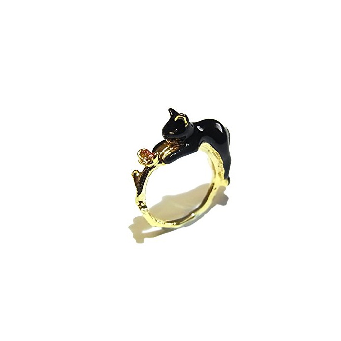 (카 더)KAZA 작은에 올랐 흑고양이 링 예쁜 묘반지 고양이 캣 애니멀 동물 개성적 악세사리 귀여운 accessory ring cat