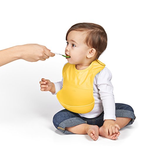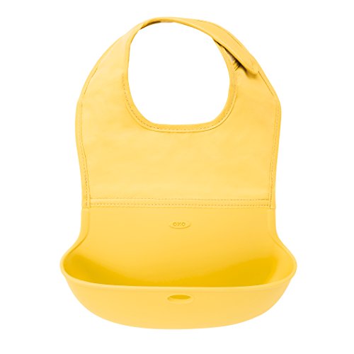 OXO Tot Waterproof Silicone Roll Up Bib with Comfort-Fit Fabric Neck, 2 Pack, Yellow/Aqua Pattern