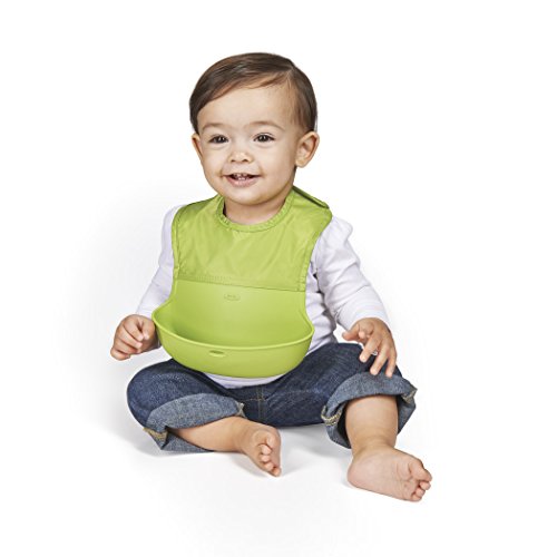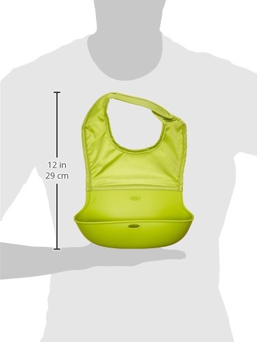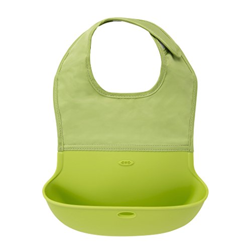 OXO Tot Waterproof Silicone Roll Up Bib with Comfort-Fit Fabric Neck, 2 Pack, Gray/Green