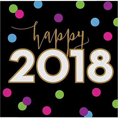 Creative Converting 324188 192-Count Beverage Paper Napkins, New Year Cheers