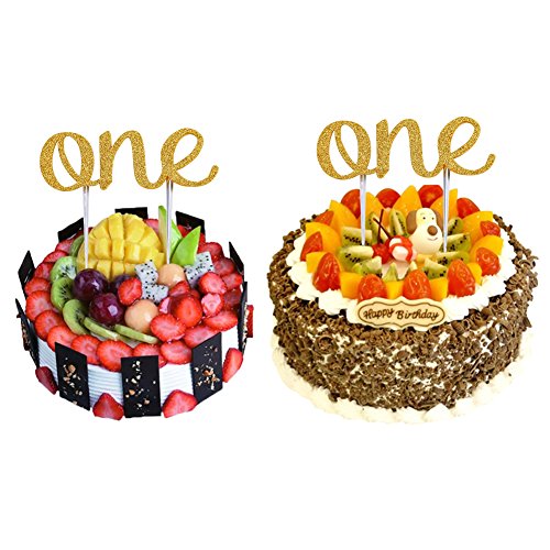 - ★ SPECIAL MATERIAL:One cake topper gold is made of EVA and Premium Quality Gold Glitter.Thick Glittery Cardstock for Durable, Long Lasting Fun.Double sided gold glitter stock gives a heavy duty feel and prevents shedding, so glitter does not wind up on your cake.The one cake topper is best choice as first birthday cake topper,baby shower cake topper,cupcake cake topper,gold cake decorations,baby shower favors,baby shower supplies and 1st birthday cake topper.
