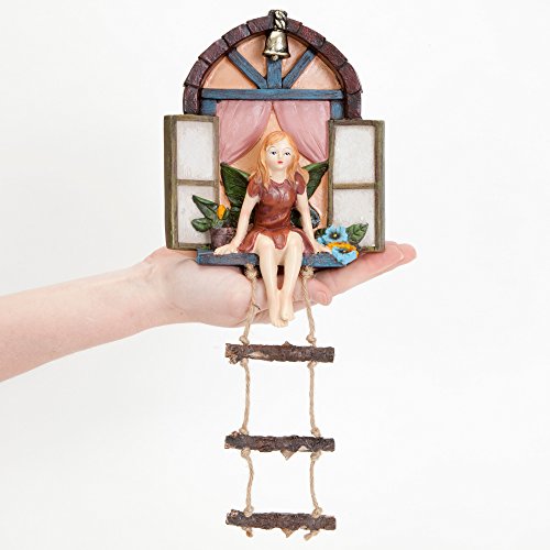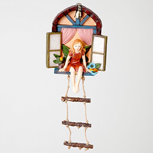 Bits and Pieces - Fairy House With Ladder Hanging Tree Sculpture - Outdoor Tree Statue - Whimsical Hand Painted Polyresin Garden Decoration