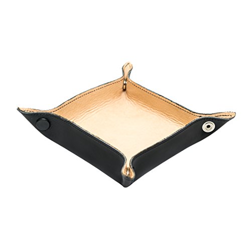 -. Feature : PERFECT FOR KEYS, CHANGE, PERSONAL ITEMS: This rustic, handcrafted Valet Tray is the perfect home for dumping your keys and spare change when you get home from a busy day. No more wasting time searching through the house for your car keys when you have this attractive Valet Tray to store them by your front door. / RUSTIC BRASS METAL SNAPS: The Valet Tray clips together with sturdy, heavy duty Brass Metal Snaps that firmly hold the corners in place and won't come apart unwillingly. Once clipped together, the space within the Valet Tray measures at 4.5 inches by 4.5 inches. / HANDMADE WITH THE FINEST MATERIALS: The Full Grain Leather that we use is the cream of the crop, the best leather around. After usage and time, the Black exterior will attain a unique patina showing grace and age. The interior is crafted using Soft Sheepskin, and with its smooth napa finish, gives a silky effect that is both durable, supple, and even water resistant. / SIMPLE AND FUNCTIONAL DESIGN: The Valet Tray is lightweight, durable and matches with any décor around the house. The Valet Tray also works great on your coffee table, or as a bedside storage container for your earplugs, cell phone, or in the bathroom for your small toiletries, lotions, etc. / MAKES A GREAT GIFT: This rustic yet elegant Valet Tray makes for a great housewarming gift, and is sure to appeal to any and all tastes. Perfect gift idea for your friend or loved one who constantly misplaces their keys. Now, when you ask, "where did you see them last?" it will be "Oh, yeah, in the Valet Tray." Save time and arguments with this neat little product.