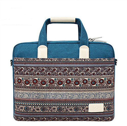 14-14.3 Inch Canvas Laptop Cases Bohemian Style Computer Bags Tablet Messenger Shoulder Bag with Handle and Strap For Notebook Computer/Laptop/Macbook Air/Macbook pro (14-14.3Inch, Blue)