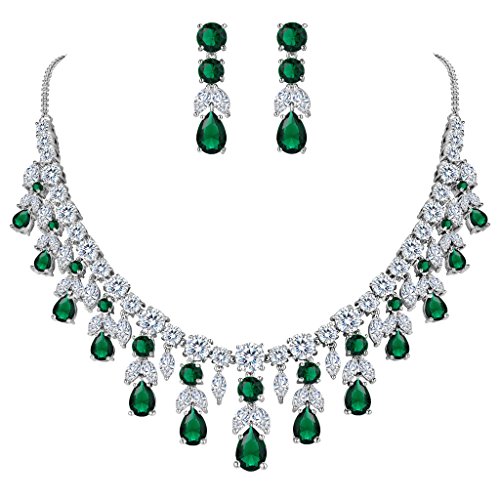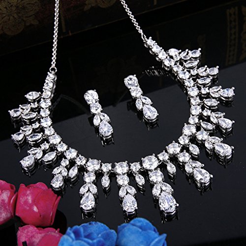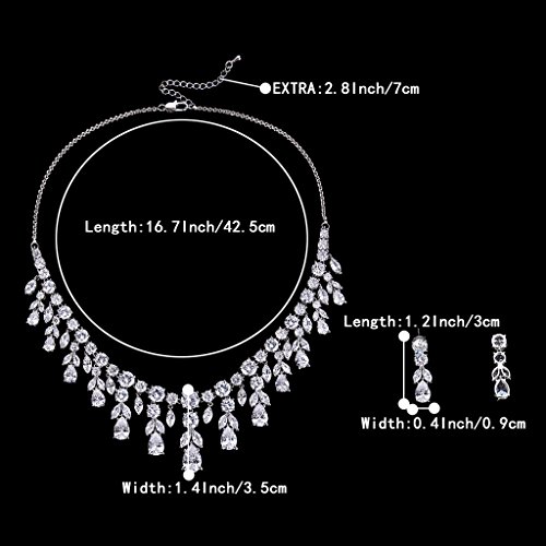 -. Title : BriLove Women's Wedding Bridal CZ Cluster Leaf Teardrop Statement Necklace Dangle Earrings Set