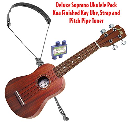 Studio : Performance Plus Publisher : Performance Plus Binding : Electronics Product Description Kay has been making instruments since 1890 and manufactured Hawaiian guitars and was the maker of Oahu Instruments in the 1930's. This Soprano Ukulele is a very fine crafted instrument with features of instrument 3 times the price but Designed to be top quality without breaking the bank. The Kay Soprano ukulele as a laminated Mahogany top back and sides with a Hawaiian KOA finish. The neck is solid Mahogany with a Koa Finished fingerboard and inlaid pearl position markers. The rosewood bridges is bolted to the body and accented with 2 pearl dot inlays. The machine heads are designed like those on a guitar, with gears to hold the right tension for tuning. The tuning heads have chrome buttons. This is good enough for a professional but priced for entry level affordability. Note to first time players about ukulele tuning and how to keep a ukulele in tune; The strings on most ukuleles are made of nylon, which will stretch at first until the material stabilizes. First tighten the strings, let the uke sit with tension overnight then go back and check -when you tuned the strings they will have pulled on the neck a bit - and then the strings you tuned before will be loose! You may have to go through all the strings a few times, to get them to stop stretching. All brand new entry level beginner ukes, will require you to repeat the procedure over and over for a few days until the strings "settle in". This may be frustrating, especially at the start but, just like new shoes they often need to "broken in" for a few days. The strings going out of tune is normal in the beginning they are "broken" in. This kit includes a strap and tuning pitch pipe. 0