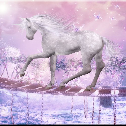Rikki Knight RK-12intilec-8824 12" X 12" White Unicorn on Bridge Pink Background Design Ceramic Art Tile