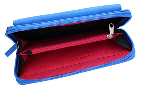 • Unzip the main compartment to reveal an additional 6 card slots, 3 bill pockets, and a large section that's divided by a zippered coin pouch