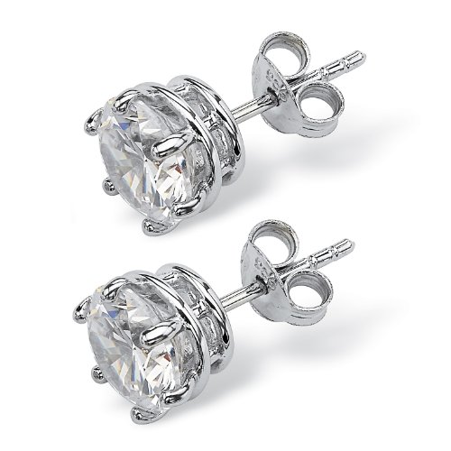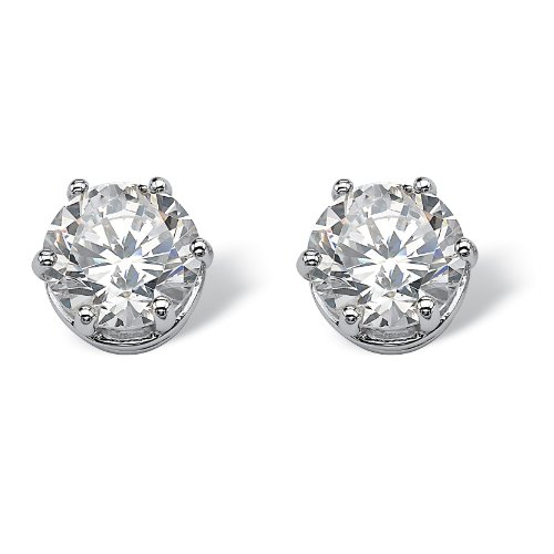 -. Title : Round White Cubic Zirconia Platinum over .925 Sterling Silver Stud Earrings
