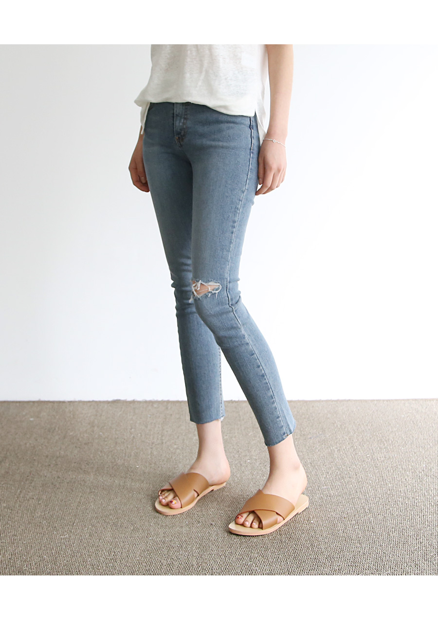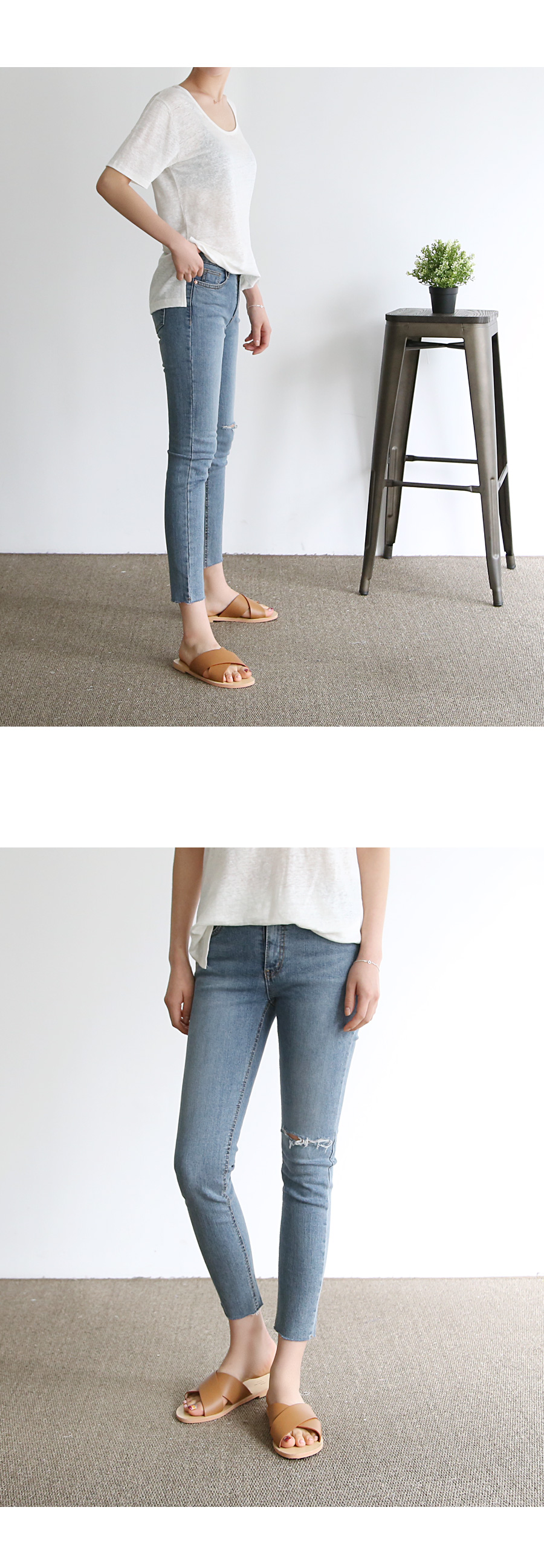 앵클라인이 완전히 보이는 크롭한 기장감을 유지하였으며