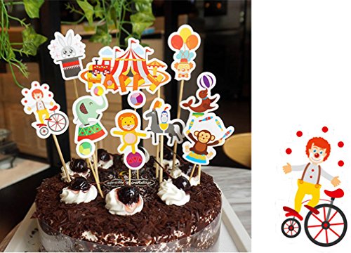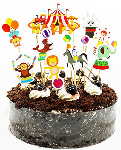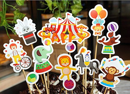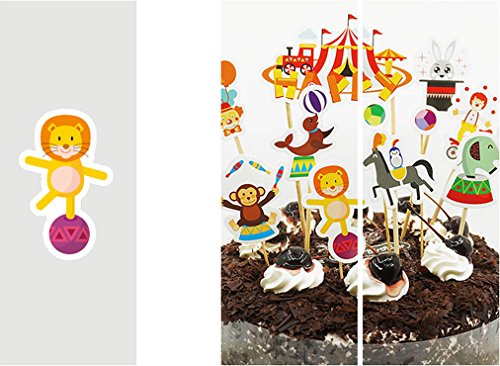 Wocuz Set of 22 DIY Cute Circus Animals Cupcake Toppers Baby Boy Shower Cake Decoration with Food Picks for Kids Birthday Party