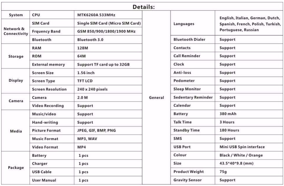 SIM Card: Single SIM Card (Micro SIM Card) Can be as a phone