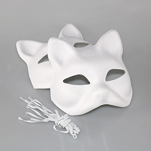 Be a beautiful Fox mask! (white,with elastic). You can make it your original surface by applying a decoration or paint to your white face. The Why not try to paint everyone in the event or summer festival. Product weight: 40g, pressed from high-quality pulp, easy to color, high hardness,Not easy to deformation. You can use pigments, clay, rhinestones, snow mud and other DIY maskFeature