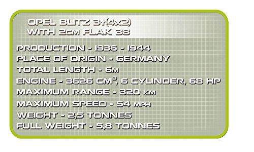 Cobi COBI 2468 - Konstruktionsspielzeug, Opel Blitz 3t 4x2 mit 2 cm FLAK 38, grau