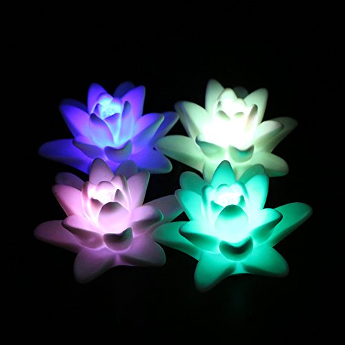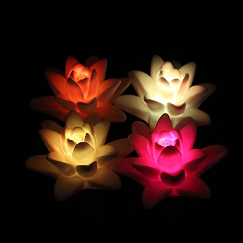 ARDUX LED Floating Candle Light, Waterproof Lily-shape Flower Color Changing Tealight Night Light Flameless Candle with Battery-powered (Pack of 4)