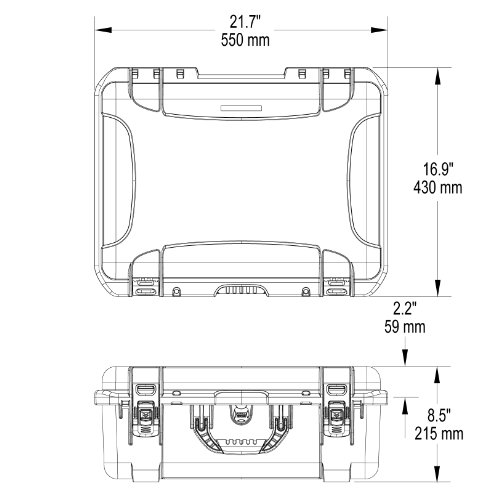 - Interior dimensionsL20.0" x W14.0" x H8.0"L508mm x W356mm x H203mmExterior dimensionsL21.7" x W16.9" x H8.5"L557mm x W429mm x H216mmWeight (empty)8.4 lbs | 3.8 kgLid depth2.1" | 53mmBase depth5.9" | 150mmMateriallightweight NK-7™ resinMax buoyancy80 lbs | 36.3 kgTemperature rangeMin -20°F (-29°C ) Max 140°F (60°C)Airline carry-onnoWatertight (IP67)yesWarrantyconditional lifetime guarantee