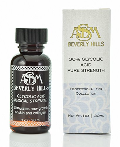 -. Binding : Misc. -. Brand : ASDM Beverly Hills -. EAN : 0718194302564 -. Feature : Why spend hundreds of dollars on facials & procedures if you can perform them safely at home? / Glycolic peels are safe exfoliating peels that can be used to remove acne scars, reduce the appearance of wrinkles & fine lines, reduce the appearance of large pores, and sooo much more! / Glycolic acid is a naturally occurring AHA acid derived from cane sugar. / 99% of the AHAs used in the beauty industry are synthetically produced, but here at ASDM Beverly Hills, our glycolic acid is naturally sourced from cane sugar. / e always recommend that first time users begin at 10% and slowly increase every month or so until desired results are achieved. If your skin is oily, combination, non sensitive, or is accustomed to peels, then you can start at 25% but we always recommend proceeding with caution. Always perform a patch test on skin to ensure that acid is not too strong for you. Please keep in mind that not all chemical peels are the same. Some can be buffered to reduce their strength. -. IsAdultProduct : 0 -. Label : ASDM Beverly Hills -. Manufacturer : ASDM Beverly Hills -. MPN : 718194302564 -. PackageQuantity : 1 -. PartNumber : 718194302564 -. ProductGroup : Beauty -. ProductTypeName : BEAUTY -. Publisher : ASDM Beverly Hills -. Size : 1 oz -. Studio : ASDM Beverly Hills -. Title : Glycolic Acid 30 Renewal Peel Exfoliator Pure Strength AHA 1oz -. UPC : 718194302564