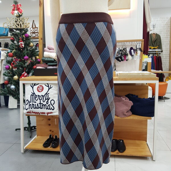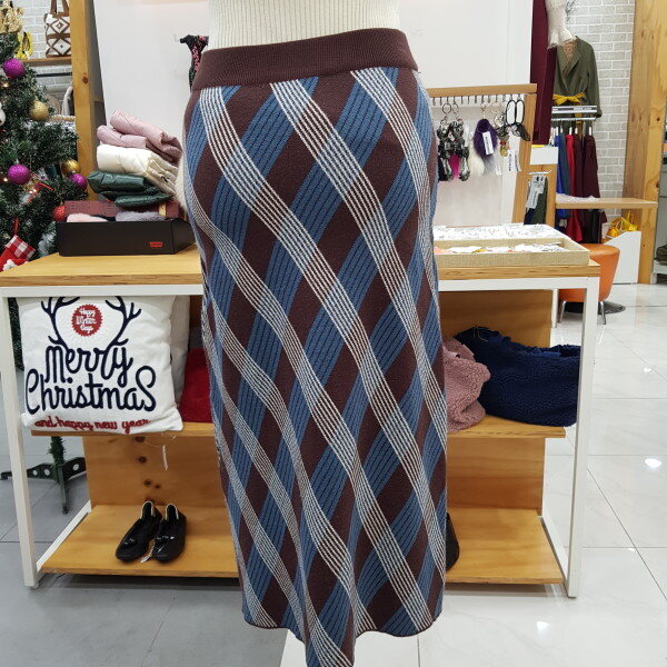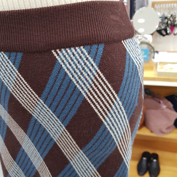 크로스체크 스커트입니다마름모 니트로 살짝 A라인으로 여성스러운 핏의 스커트입니다