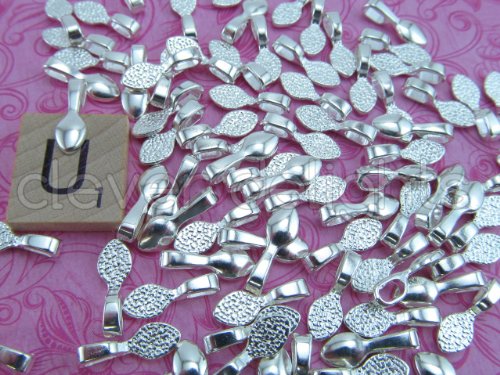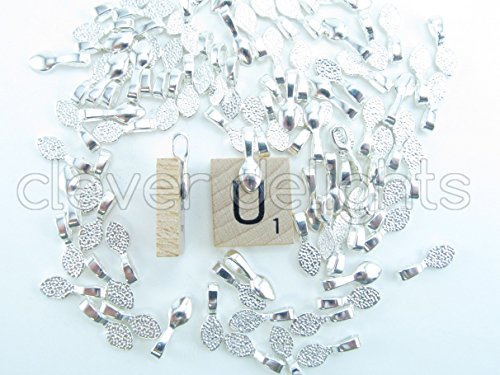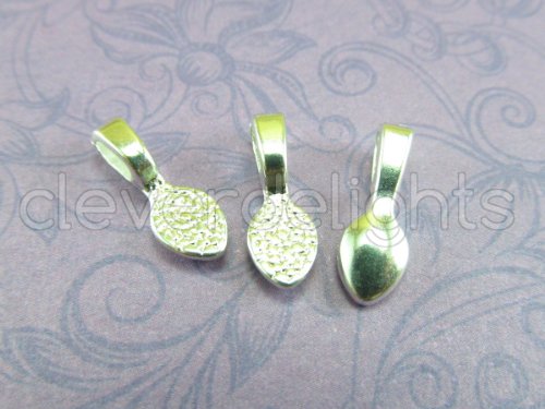 25 CleverDelights Teardrop Bails - Shiny Silver Color - 16x5mm - Small Glue On Bails - For Scrabble and Glass Pendants - 5/8 x 1/4 inch 16mm x 5mm