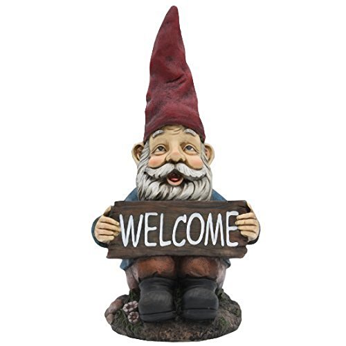 TruePower Quality Garden and Patio Decor Garden Gnome and Welcome Sign, 14"