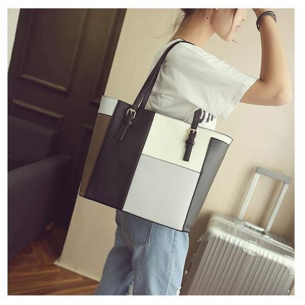 大胆な配色がおしゃれな大容量のトートバッグ。