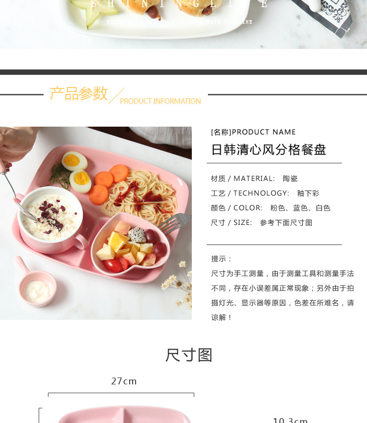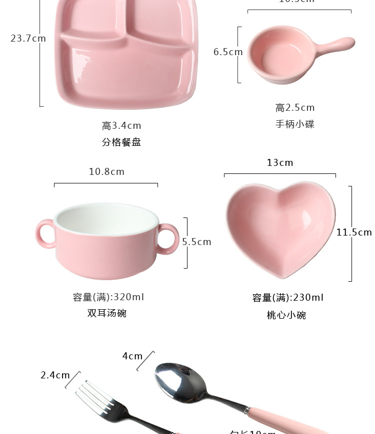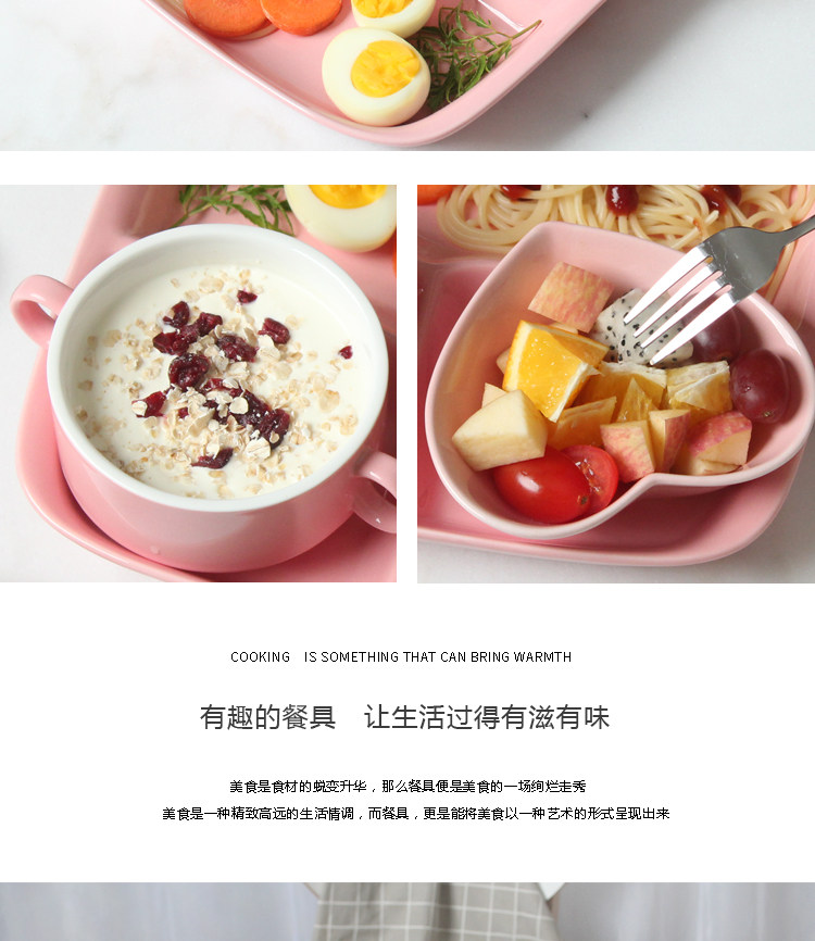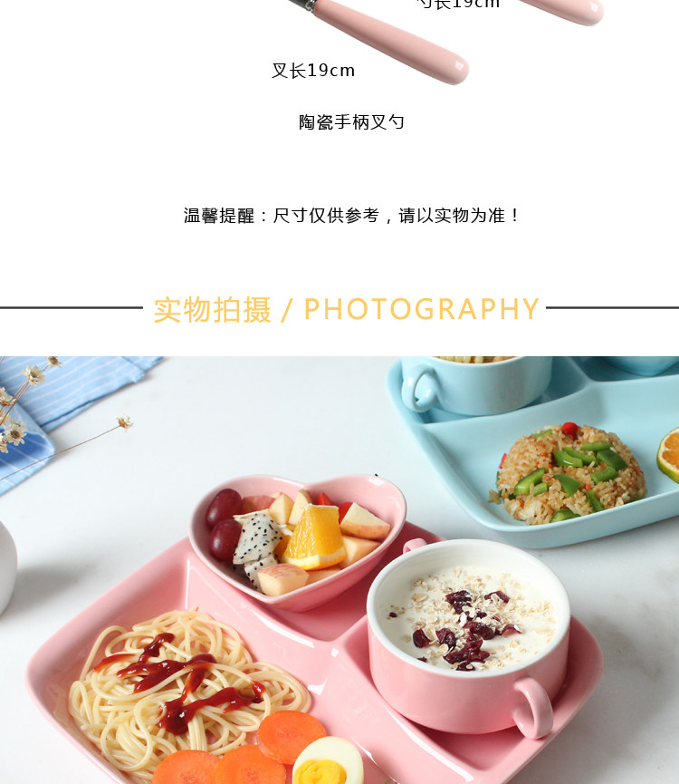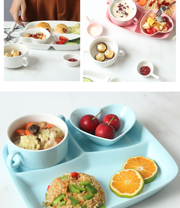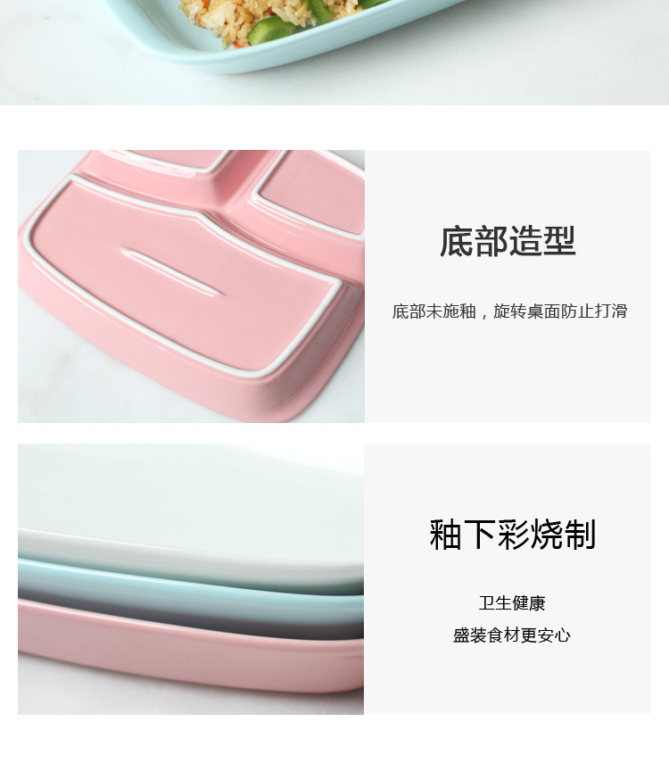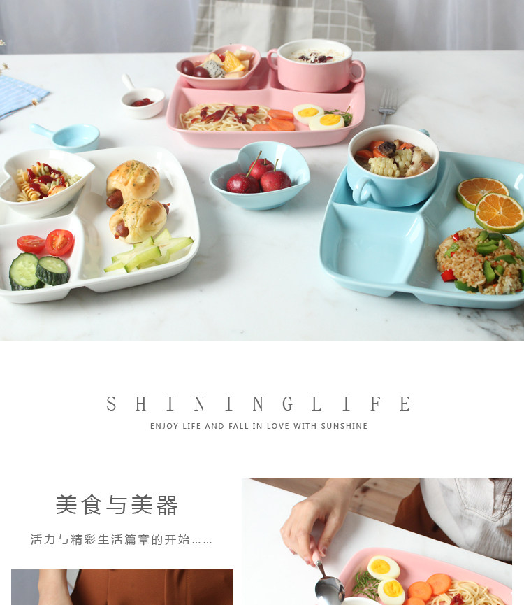 陶瓷餐盘分格儿童早餐盘子家用分隔餐盘六件套餐具多格分食一人食