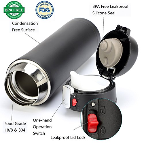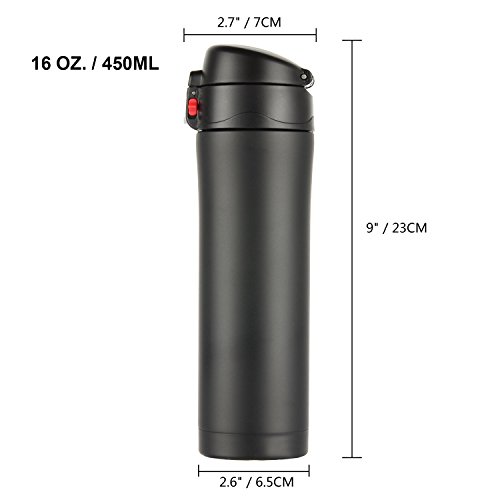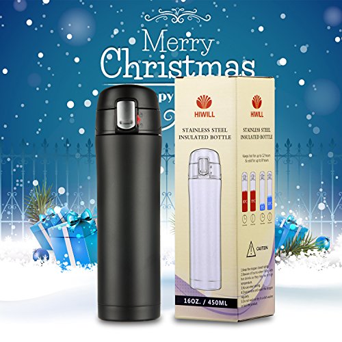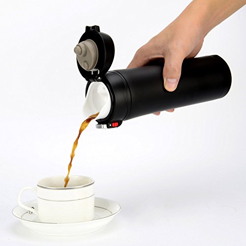 HIWILL Vacuum Insulated Mug fits two regular coffees for you. It keeps your coffee hot after a day. One handed operation for on-the-go drinking, rather than having to mess about pouring a cup like other thermos, just unlock, push the button and drink.