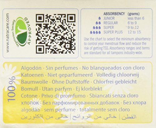 Studio : Natracare LLC Publisher : Natracare LLC Binding : Health and Beauty Product Description Certified organic cotton tampons to GOTS, accredited by the soil association. Totally chlorine free (TCF), biodegradable and compostable. Absolutely no dioxins produced in the growing or processing of the cotton. No perfumes, lubricants or synthetics. 0