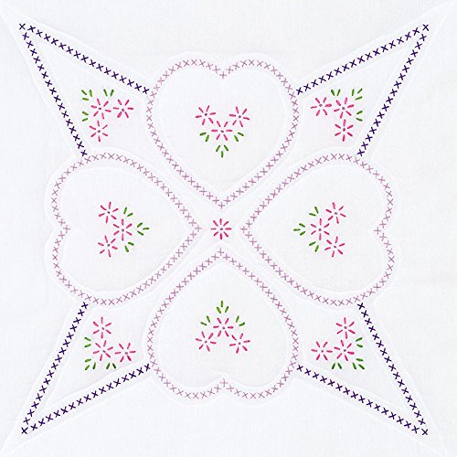 Jack Dempsey Stamped White Quilt Blocks, 18-Inch by 18-Inch, Four Hearts, 6-Pack