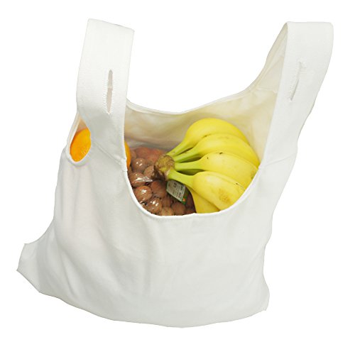100% CANVAS REUSABLE SHOPPING TOTE GROCERY BAG WITH HANG HOLES,WHITE (PACK OF 2)