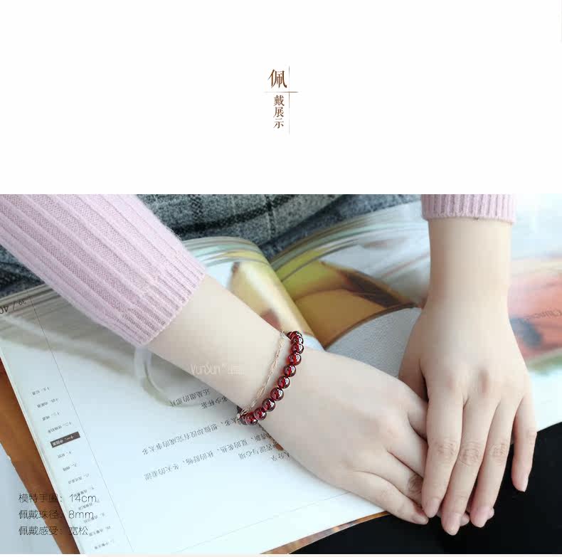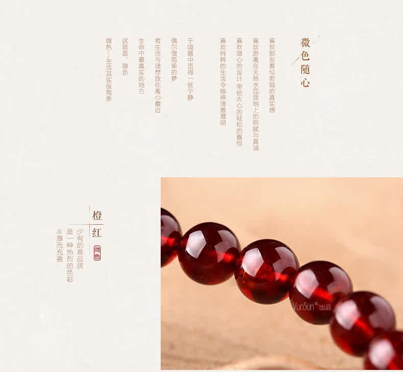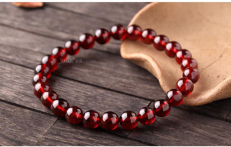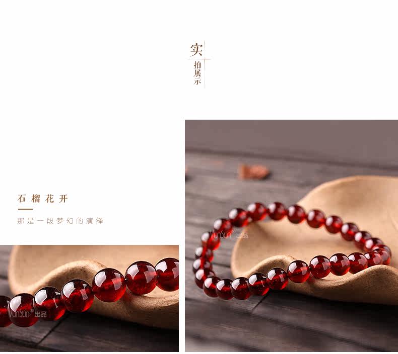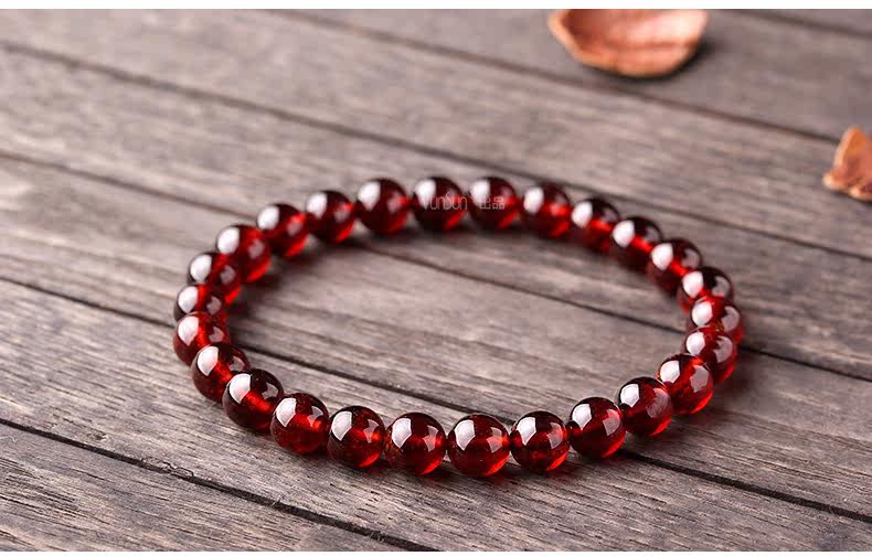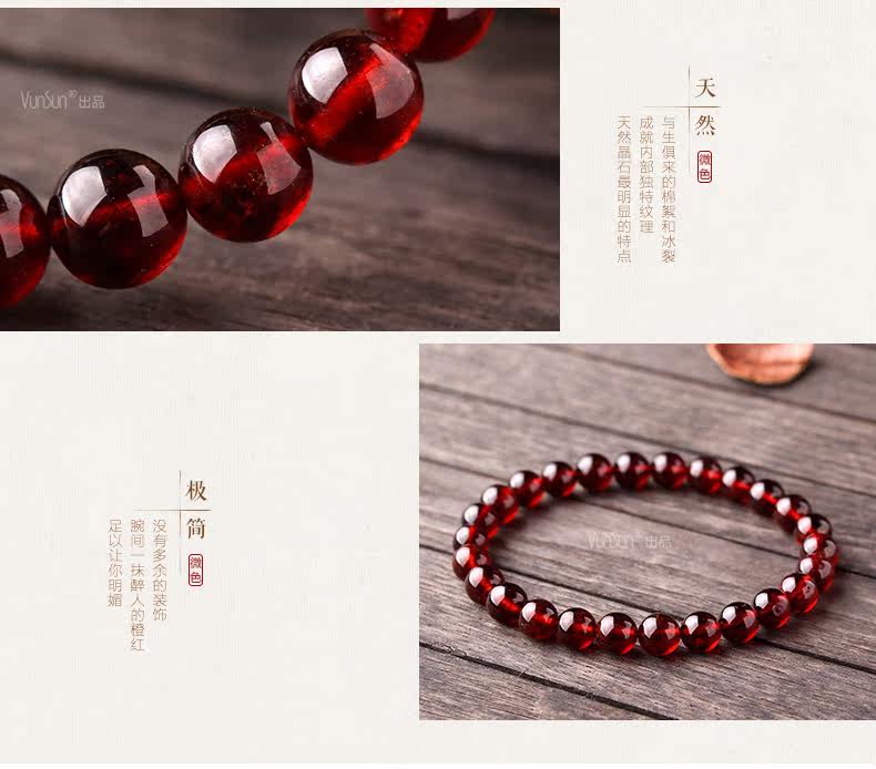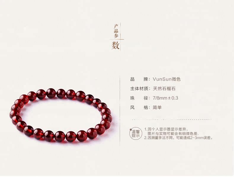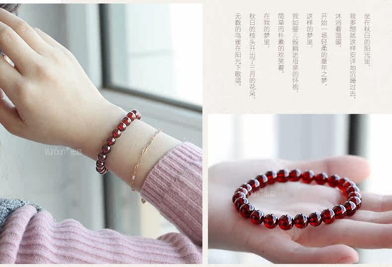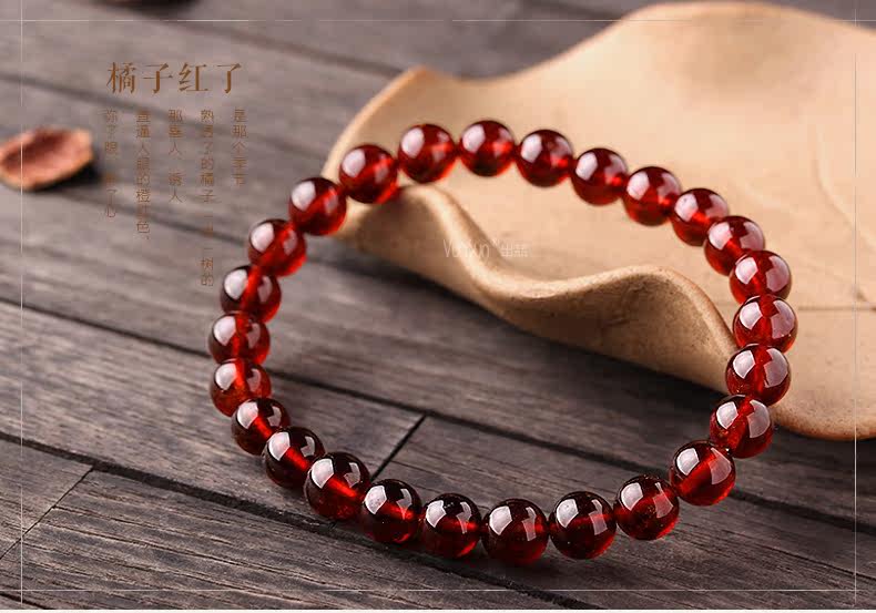 橙红色石榴石手链女款 单圈简约手串 文艺范 人气饰品