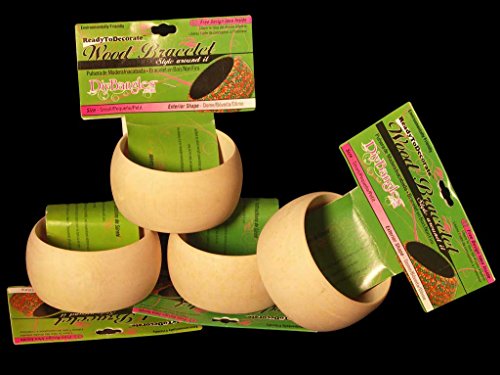 4 Pack, Wood Bangle Bracelet, Dome Exterior, 1.50" Wide, Small Size, ReadyToDecorate (R)