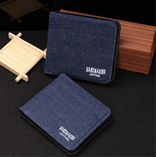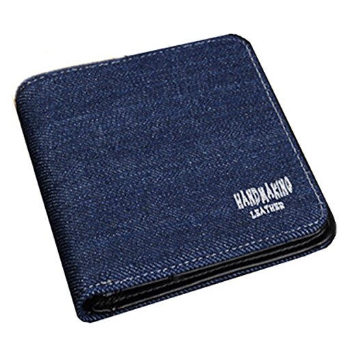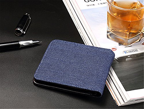 Binding : Apparel Product Description Detail: Color: Denim Blue (Black lined) Material: Denim Size:4.5*3.8*0.8inches(11.5*9.7*2cm) Capacity: can be placed in large notes, bank cards External: concealed buckle Internal structure: card position, Change bit, Big notes, Key position, Passport, Certificate bit, Photo bit Note: Please permit 0.1-0.4inches error because of hand measure Please permit some color aberration because of different display