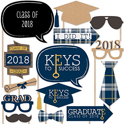 Grad Keys to Success - 2018 Graduation Photo Booth Props Kit - 20 Count