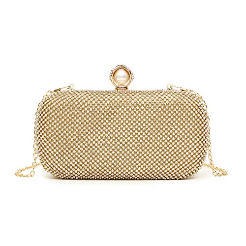 -. Feature : Superior metal frame construction with shiny and fashion rhinestone outside. / Dimensions: 6.88"L x 1.96"W x 3.9"H,weight is 0.83 pounds,chains length:45.6" / This gorgeous bag is Silver or Gold with hard case and round crystal diamante detail,compact but elegant.Can hold iphone 6s plus,cash,card,keys,mirror and makeups. / The bag can be clutched by hands or hung on shoulders with the detachable chain. / Glamorous party handbags avaible 4 stylish and classy colors to matchUnique design evening bags are perfect for night out, date, cocktail party, family reunion, prom, banquet and so on .