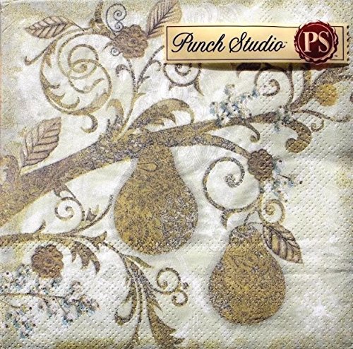 Punch Studio Set of 40 Cocktail Beverage Paper Napkins ~ Golden Pears