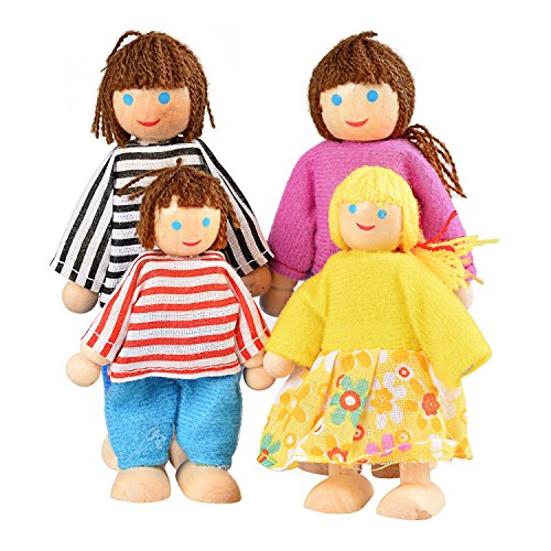 LOVELY 4 WOOD FAMILY DOLL: There have a family doll of 4 people, include parents, son and daughter. The dolls are about 2-4 inches.