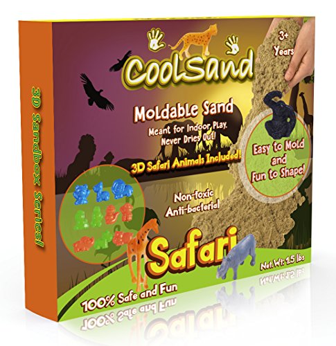 Here's why everyone is raving about CoolSand: Never dries out or hardens, allowing it to be reused countless times. Has the feel of wet beach sand without any of the mess. Doesn't stick to hands, clothes, or molds. The colored indoor sand is conveniently stain-free. Very easy to mold and impressively holds its shape. Click 'Add to Cart' now to create your own sandy safari with a play sand and molds kit that gives you the best bang for your buck!Feature