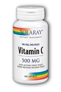 Product Description Two stage timed release vitamin C 1000 mg from solaray is unique because each capsule releases half its vitamin C content rapidly after ingestion and the other half over a period of up to 12 hours. 0