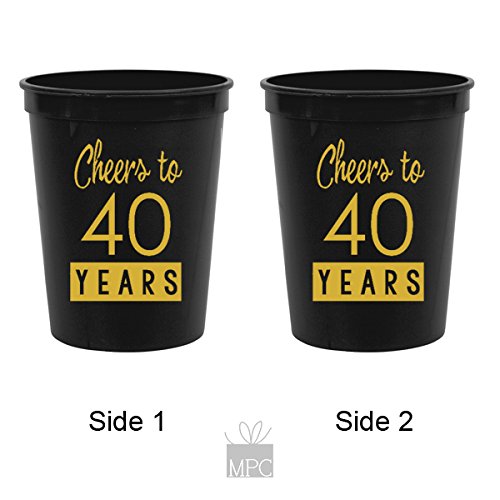 40th Birthday Black Stadium Plastic Cups - Cheers to 40 Years