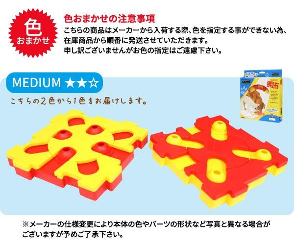 隠されたご褒美を夢中で探すパズルゲームで、ペットが楽しく遊びながら学習できます。付属のブロックの中にセットされたおやつを、鼻先や前足を使って出口まで導けばご褒美ゲット!!食べ終わったらほめてあげて下さい♪ |